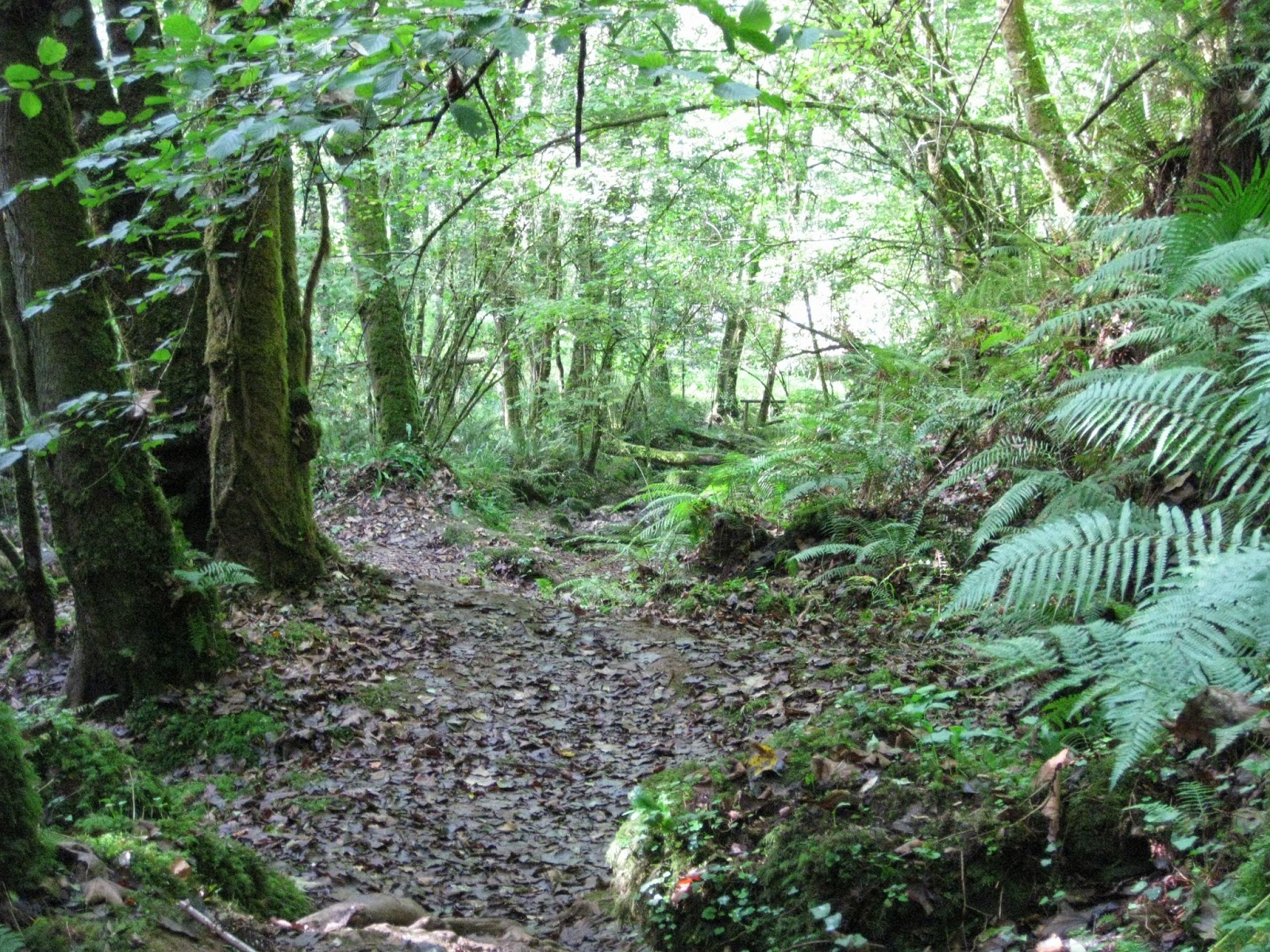 localidad de Tazones, camino de un bosque mixto de eucaliptos, carbayos,